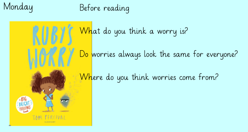 Day 1 We began Children’s Mental Health Week by reading the story Ruby’s Worries. This thoughtful book helped us explore some important questions together: What is a worry? Are worries the same for everyone? Where do they come from? The children took time to really think about their answers and showed wonderful listening skills, respect, and care for each other’s ideas and opinions. It was lovely to see such open and thoughtful discussions taking place.